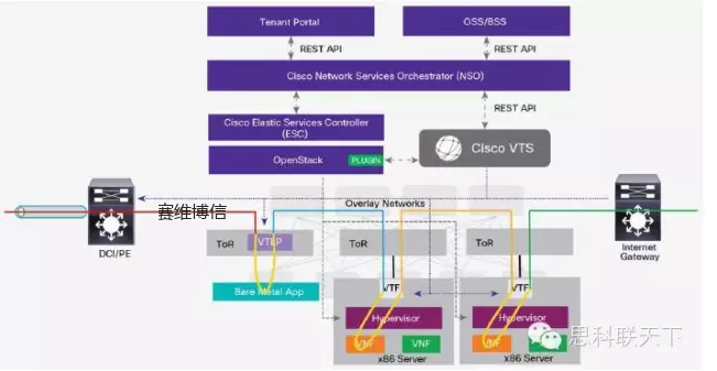 思科® 虚拟拓扑系统(VTS)是一个基于标准的开放式覆盖层管理和设置系统,专门面向数据中心网络。该系统能针对物理和虚拟工作负载自动执行矩阵设置,并能帮助服务供应商和大型企业实现自动化和快速服务交付,从而广泛受益于新一代云架构。                               利用虚拟拓扑系统可以为服务供应商和大型企业创建一个基于标准、高度可扩展的多租户解决方案。通过与 OpenStack 和 VMware v Center 等云协调系统集成,虚拟拓扑系统可自动执行复杂的网络覆盖层设置和管理任务。对该解决方案的管理可由一个嵌入式 GUI 完成,也可通过一组由协调和云管理系统共享的北向 REST API 进行管理。