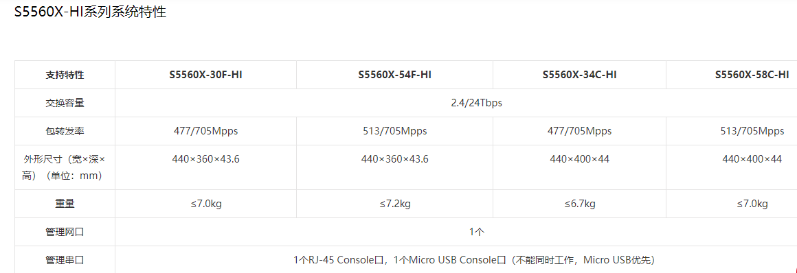 S5560X-HI系列交换机是H3C公司自主研发的高性能IPv6万兆以太网交换机,是H3C公司采用业界领先的ASIC技术开发的高性能、高端口密度、高安全性的增强型千兆三层以太网交换机,支持IPV6管理和转发,支持丰富的管理和安全特性,产品主要定位于企业与园区的接入层,满足大表项VXLAN千兆接入的需求,