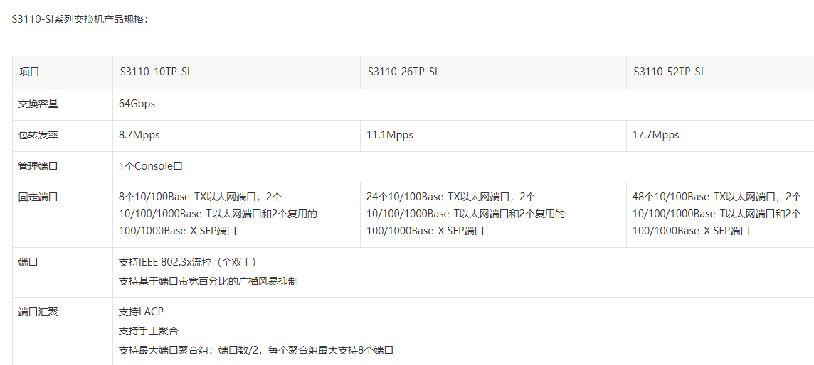 H3C S3110-SI系列交换机是H3C公司为构建高安全、高智能网络需求而专门设计的新一代百兆以太网交换机产品,在满足高性能接入的基础上,采用新一代绿色节能设计理念,给用户带来一个高性能、高性价比、绿色节能的接入网络。
