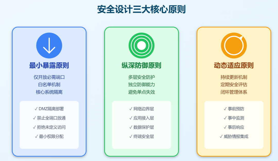 在构建内外网互联的安全架构时,需始终遵循以下三大原则: