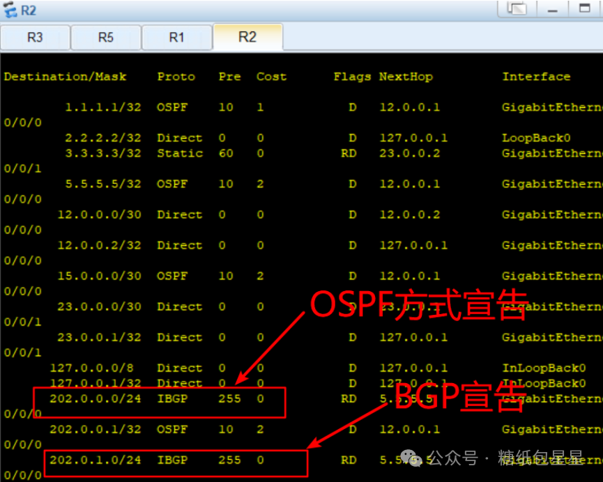7 [R2-bgp]import-route static //注入静态路由[R2-bgp]import-route ospf //注入OSPF